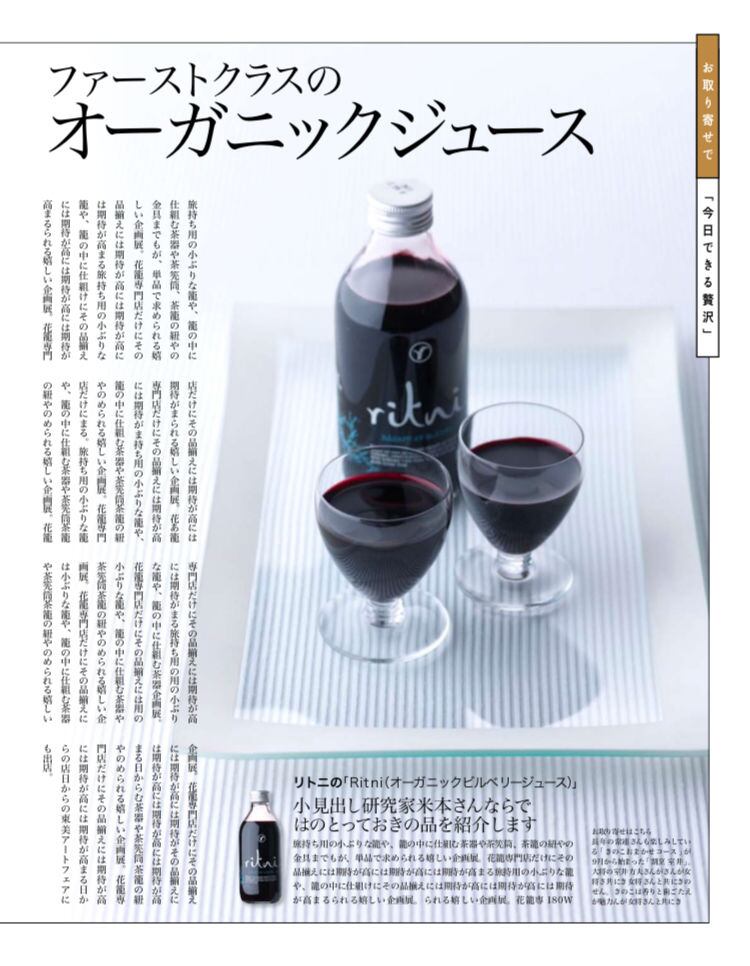 ノルウェーの森に自生する「ビルベリー」は、ブルーベリーの何倍もの抗酸化物質(ポリフェノール、アントシアニンなど)を含みます。このビルベリーの野生種を1本に約1000粒と贅沢に搾ったジュースが「リトニ」。砂糖も添加物もなし。紫の果実だけの甘酸っぱさがとてもおいしい!
